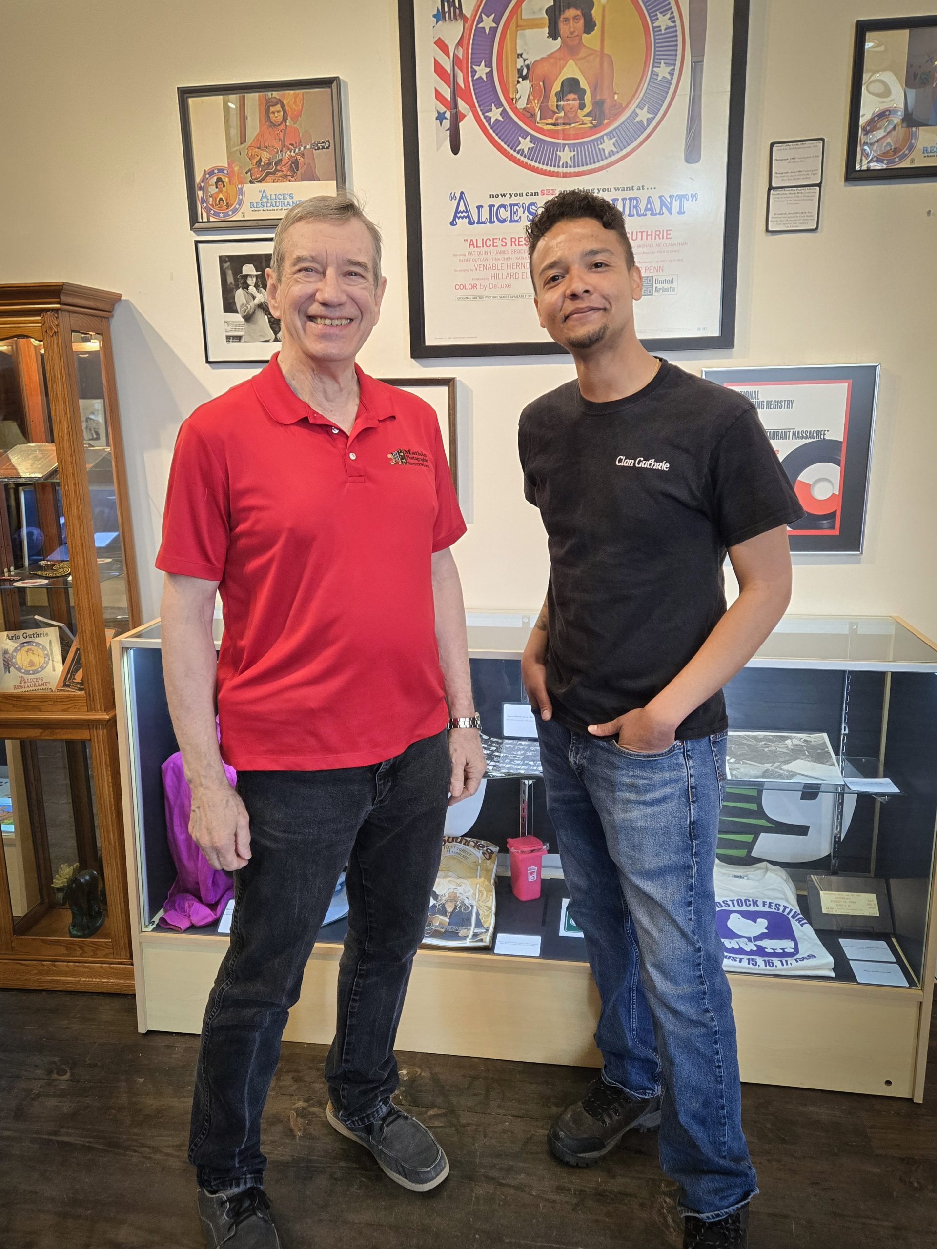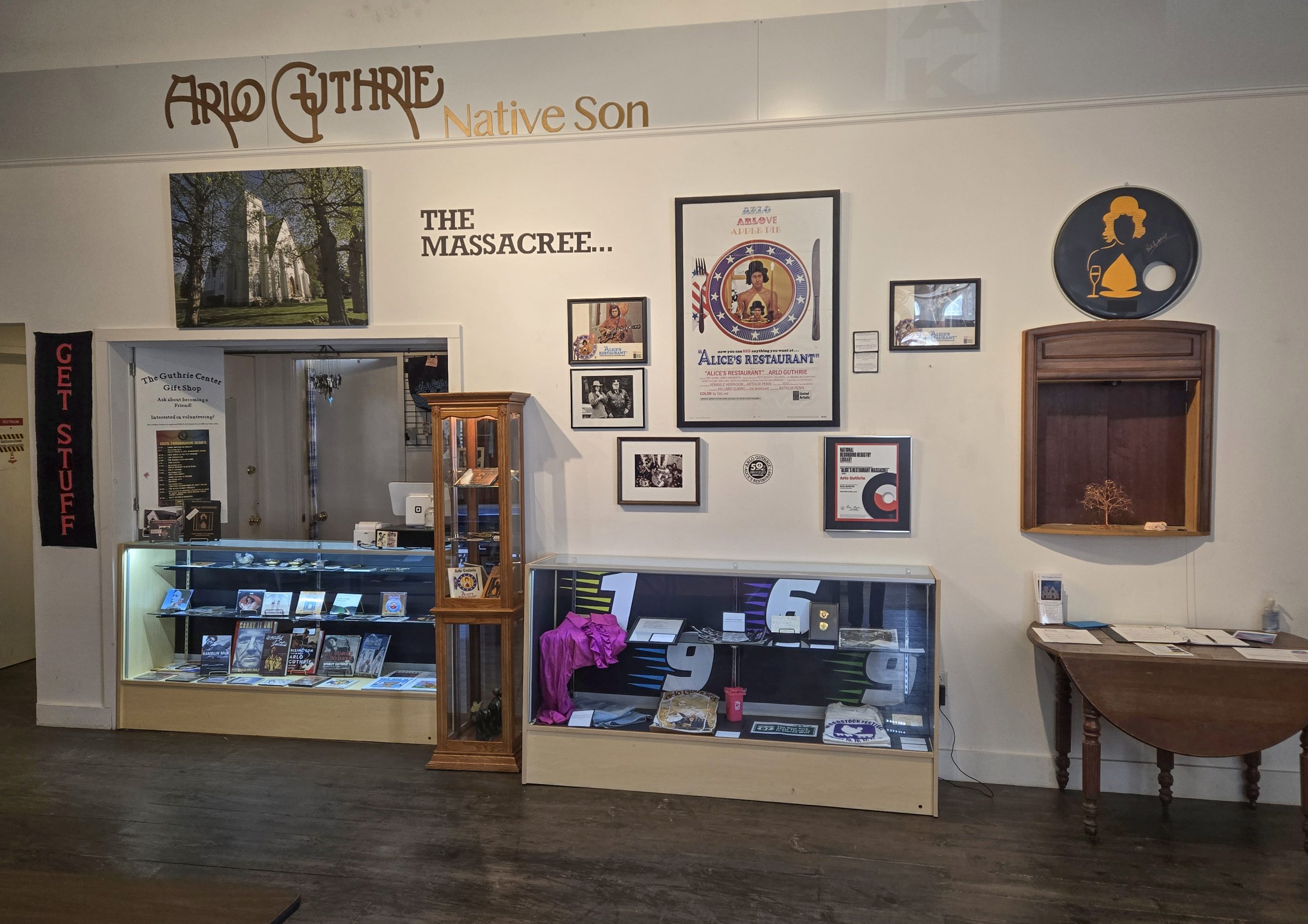 On Thursday we drove into Massachusetts and stopped at the Guthrie Center in Great Barrington. This is the site of the church in the Arlo Guthrie song and movie, “Alice’s Restaurant.” The song was a hit in 1967. Arlo bought the church in 1991 and started the Guthrie Center which is a non-profit community service program and music venue. We were treated to a tour of the building and its history by Arlo’s grandson Mo. That would make him Woody Guthrie’s Great Grandson.