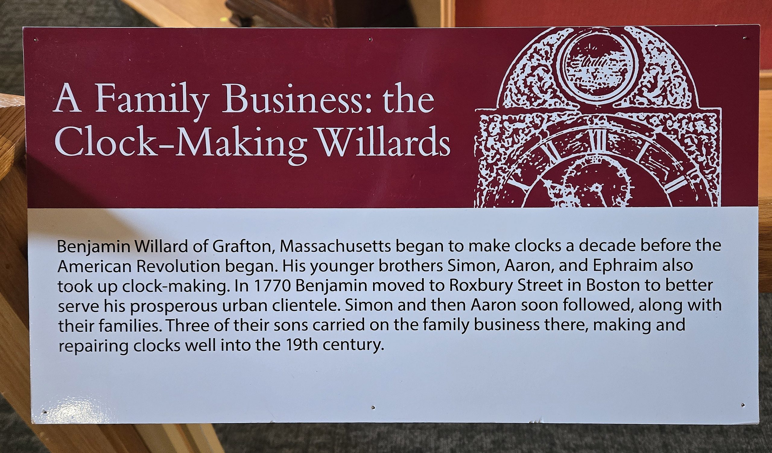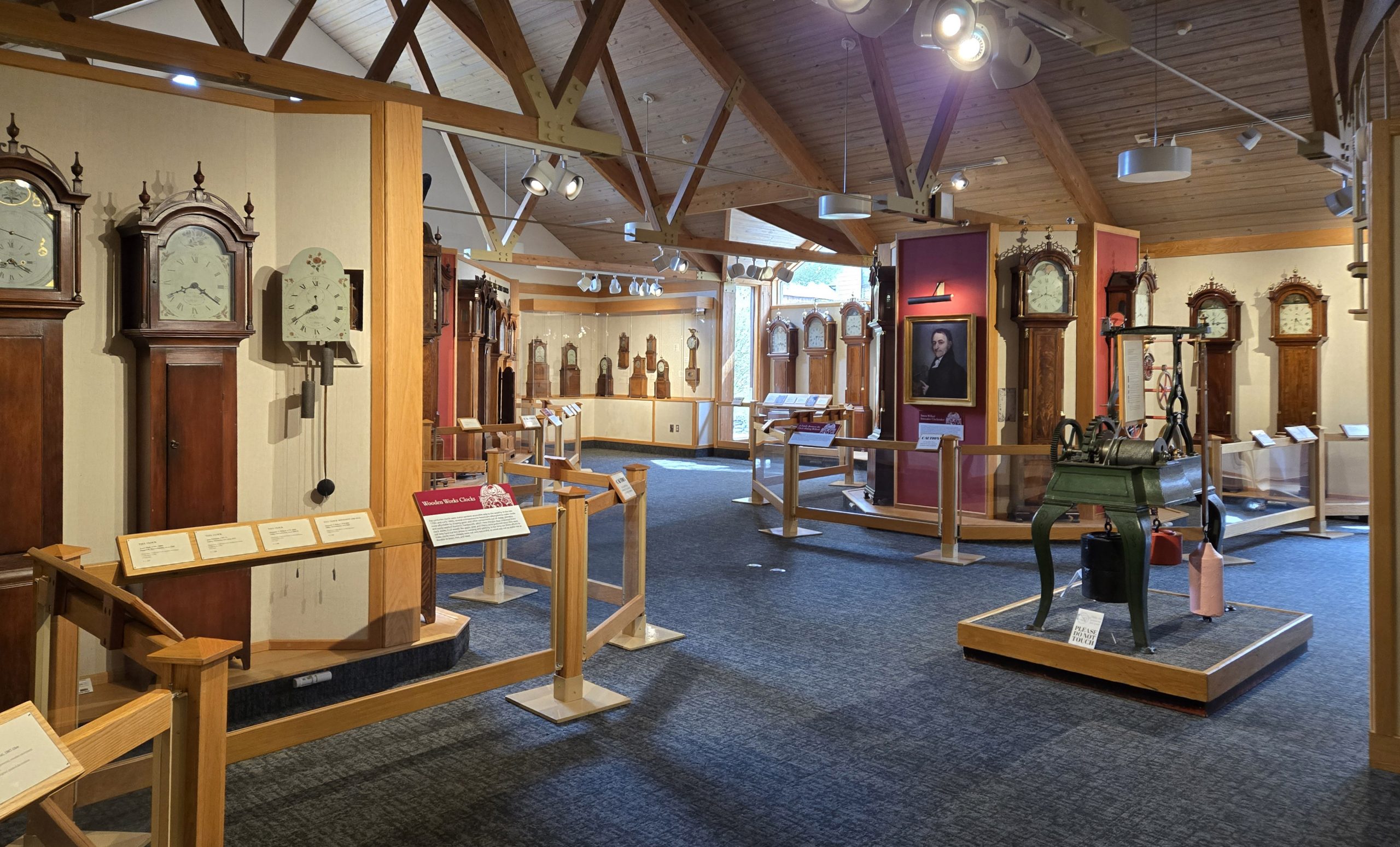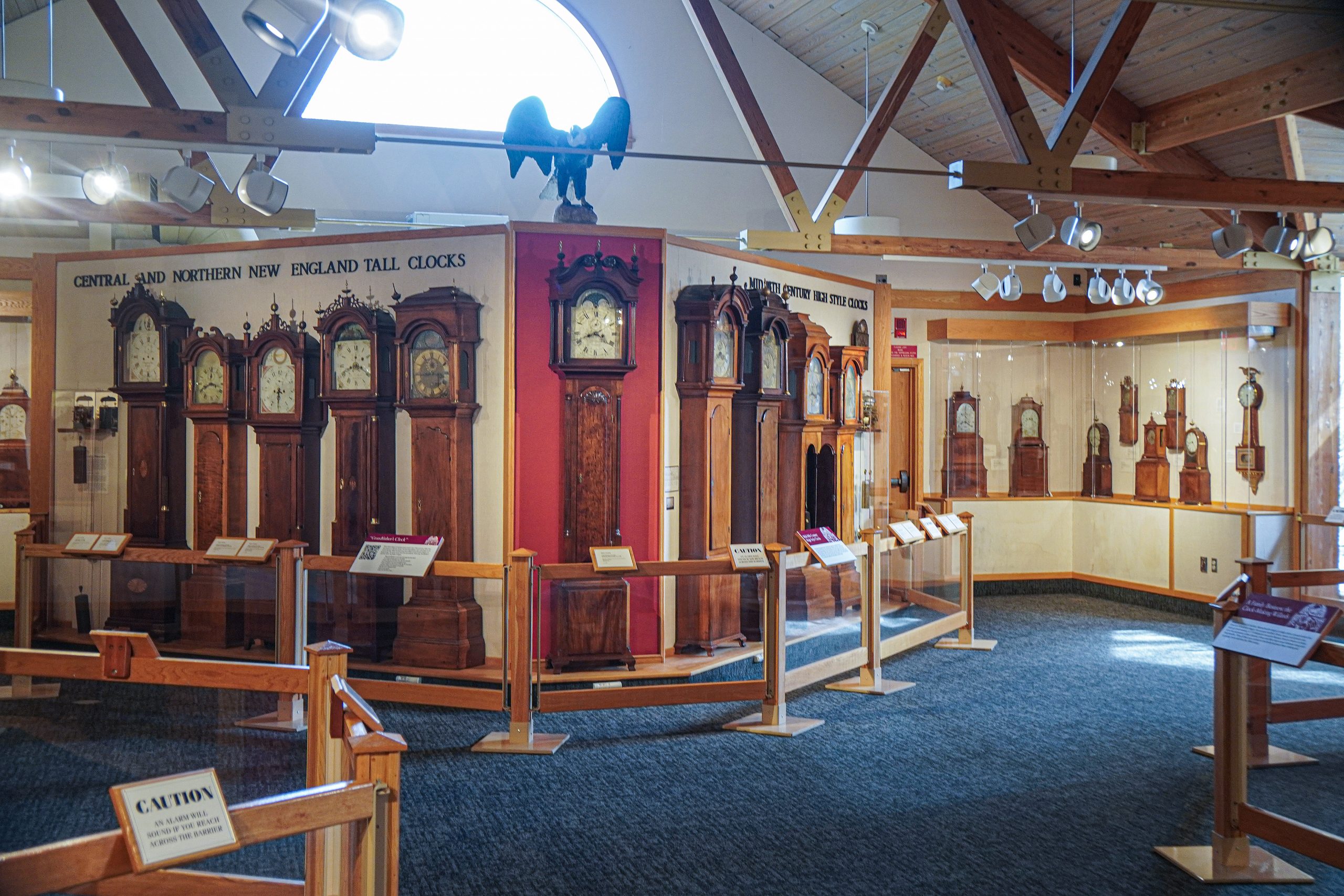 An outstanding exhibit at the village was Albert’s brother, Cheney Wells large collection of clocks. Massachusetts was a center of clock making in the United States from colonial days and the collection includes a large number of tall clocks as well wall and table clocks made in 19th century Massachusetts. The clocks in the collection were all made in New England between 1725 and 1825.