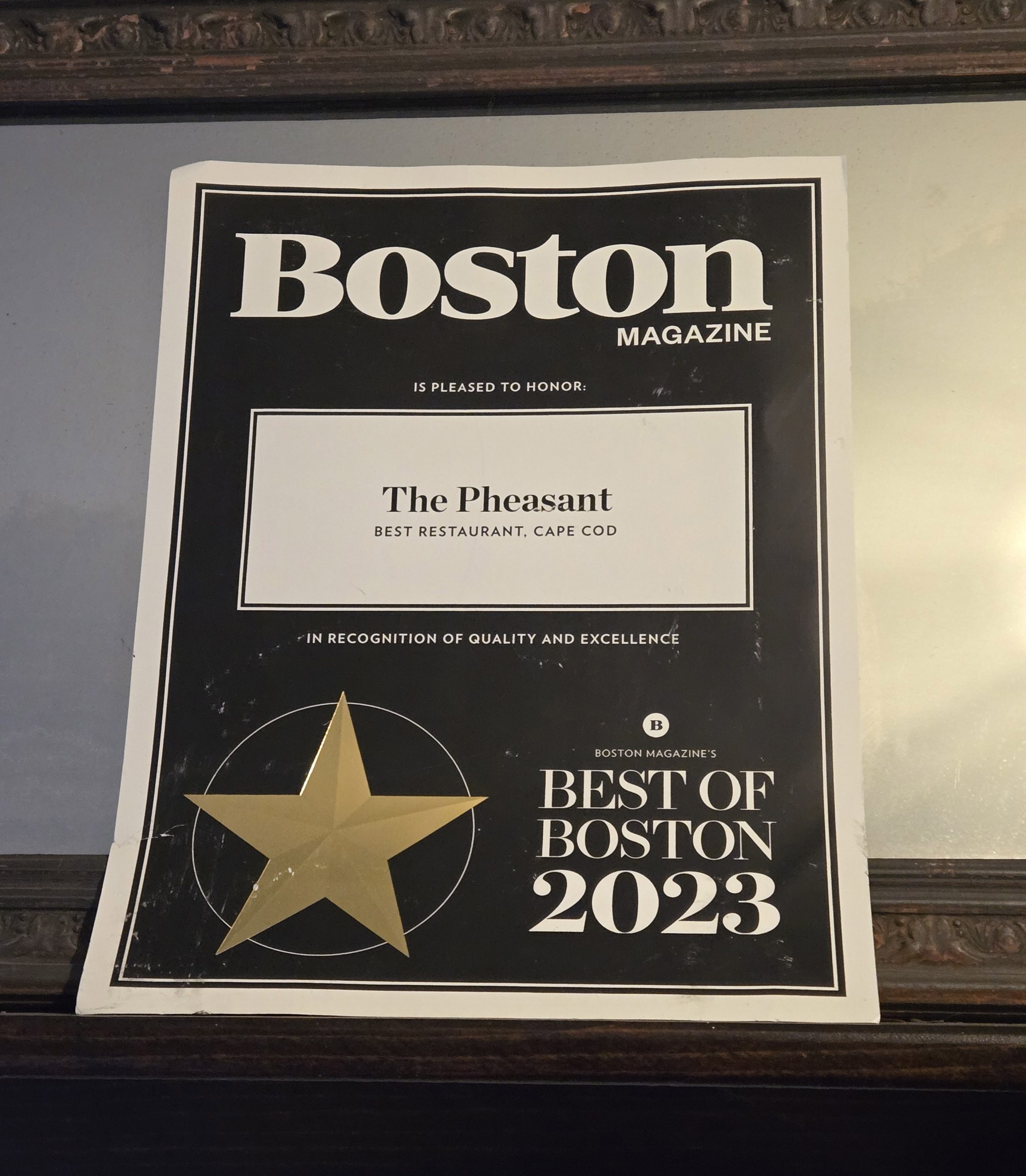 Sunday, we headed to Cape Cod stopping for a few minutes at Plymouth to admire the famous Plymouth Rock which commemorates the landing of the Mayflower in 1620. We had lunch in Hyannis and dinner at The Pheasant in Dennis.