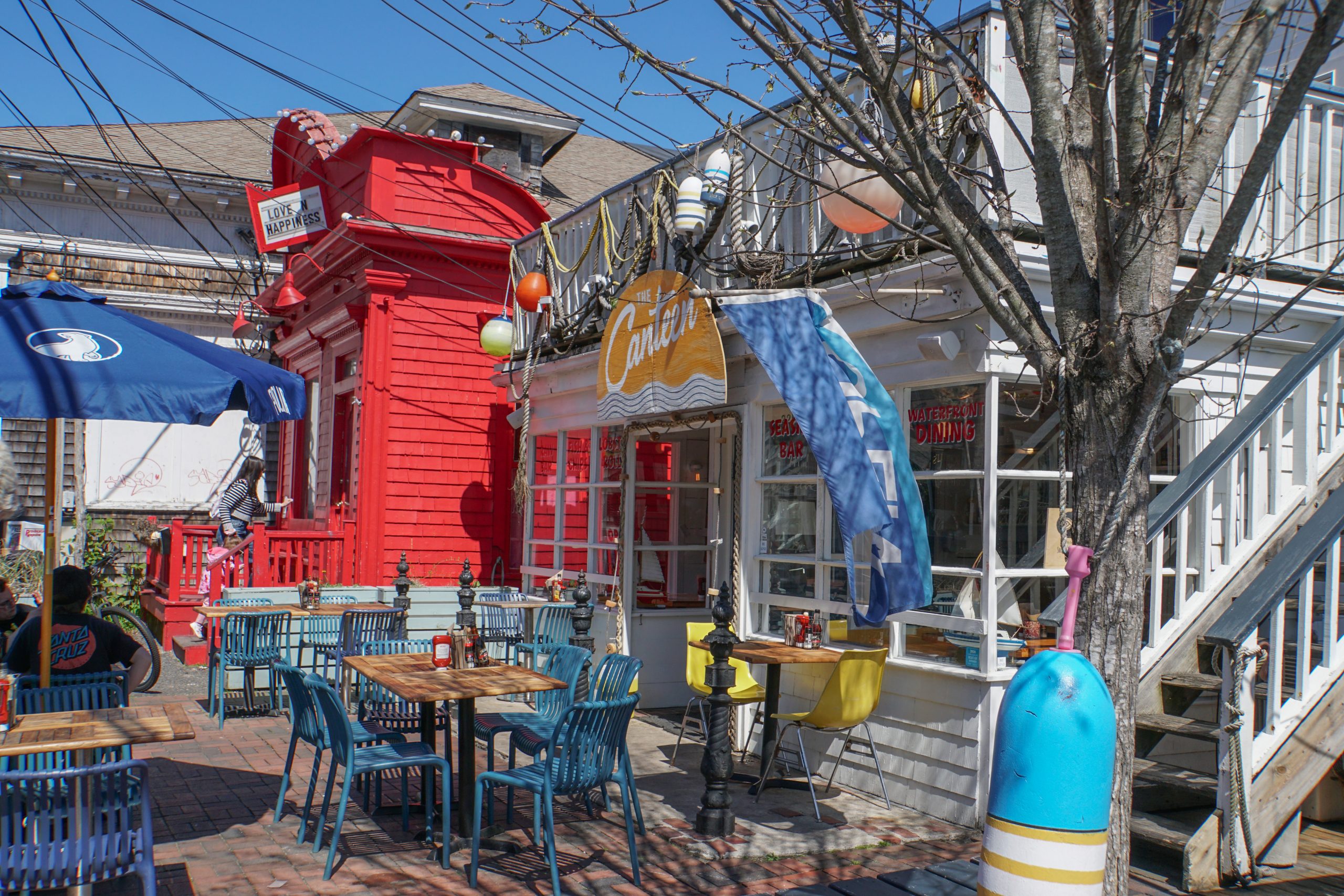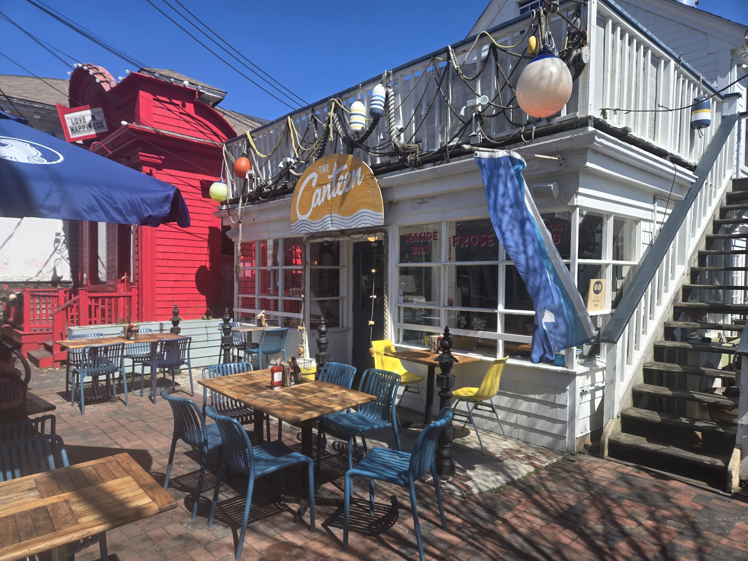After the cruise with about a dozen people plus the tour guide and pilot, we drove on up the cape to Provincetown. Provincetown was the site of the first landing of the Mayflower in 1620 before they headed across the bay to Plymouth. It is now primarily an artist colony and tourist town. We had lunch at the Canteen where we could eat our wonderful Lobster Rolls on the beach.