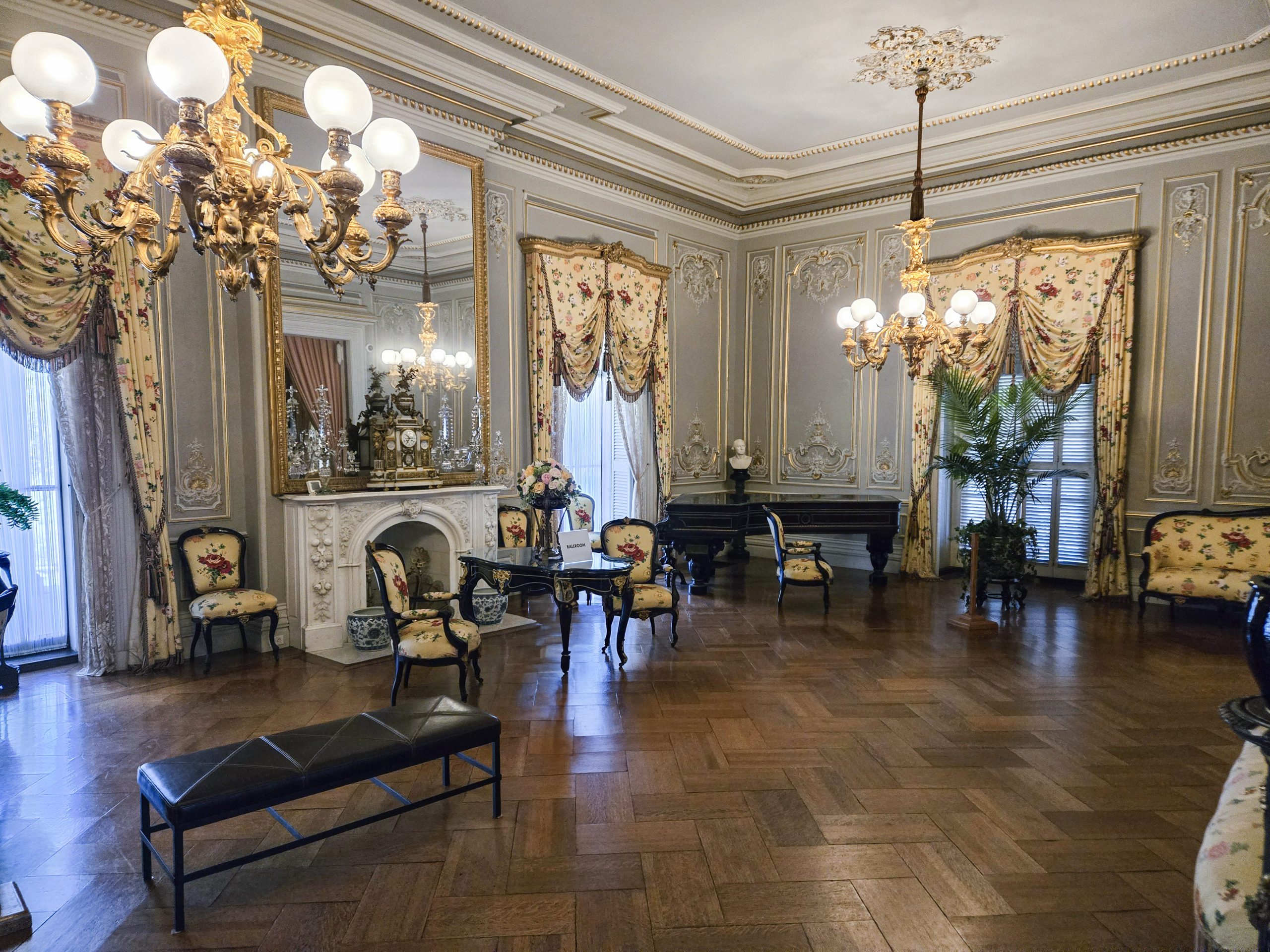 After lunch at the up-scale Chanler Hotel, we went to the Chateau-sur-Mer. This is a more reasonable house first built in 1852 and remodeled in 1870. The house was built by William Wetmore who built his wealth on the China trade. The Wetmore family lived there for about 100 years.