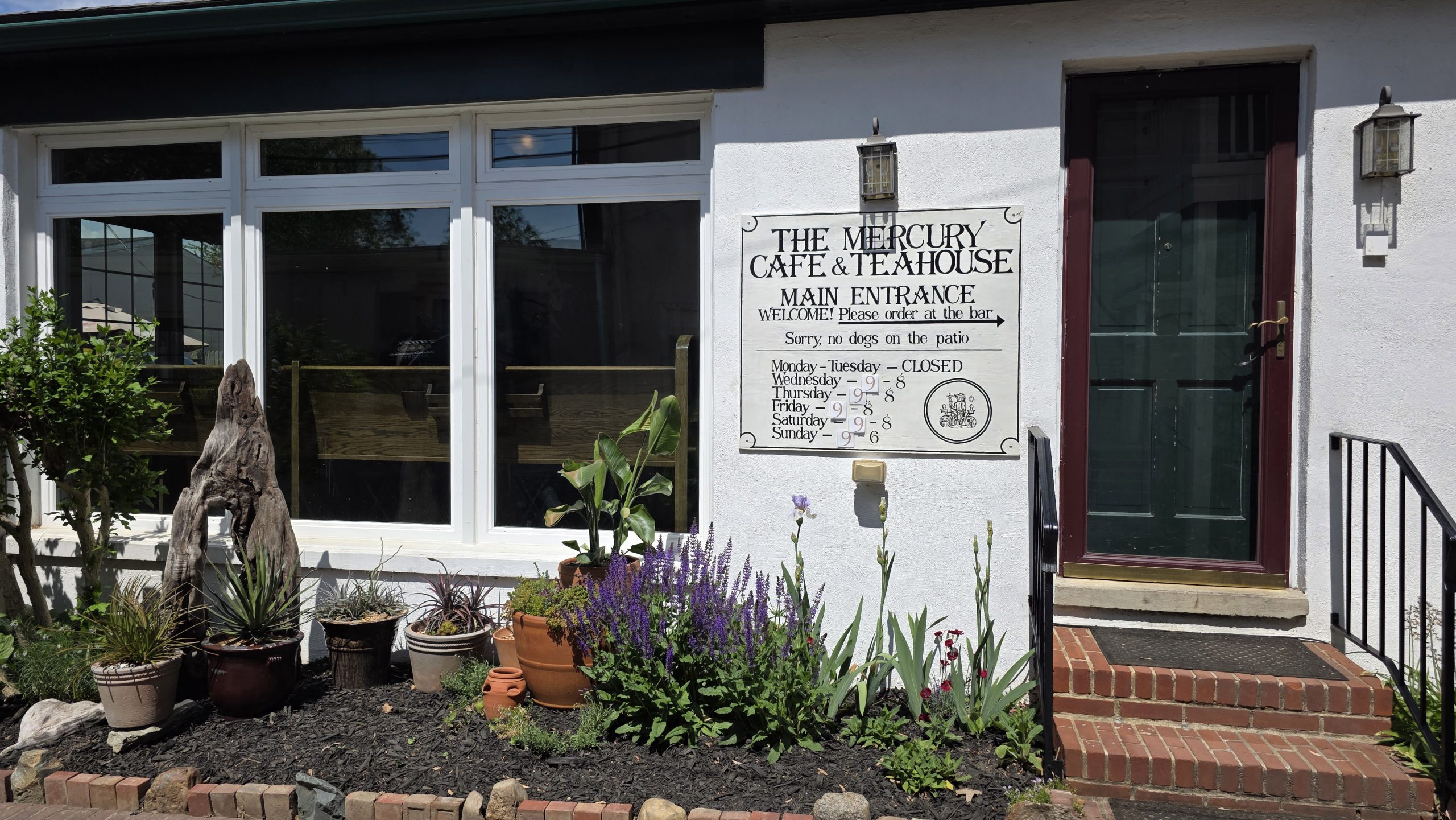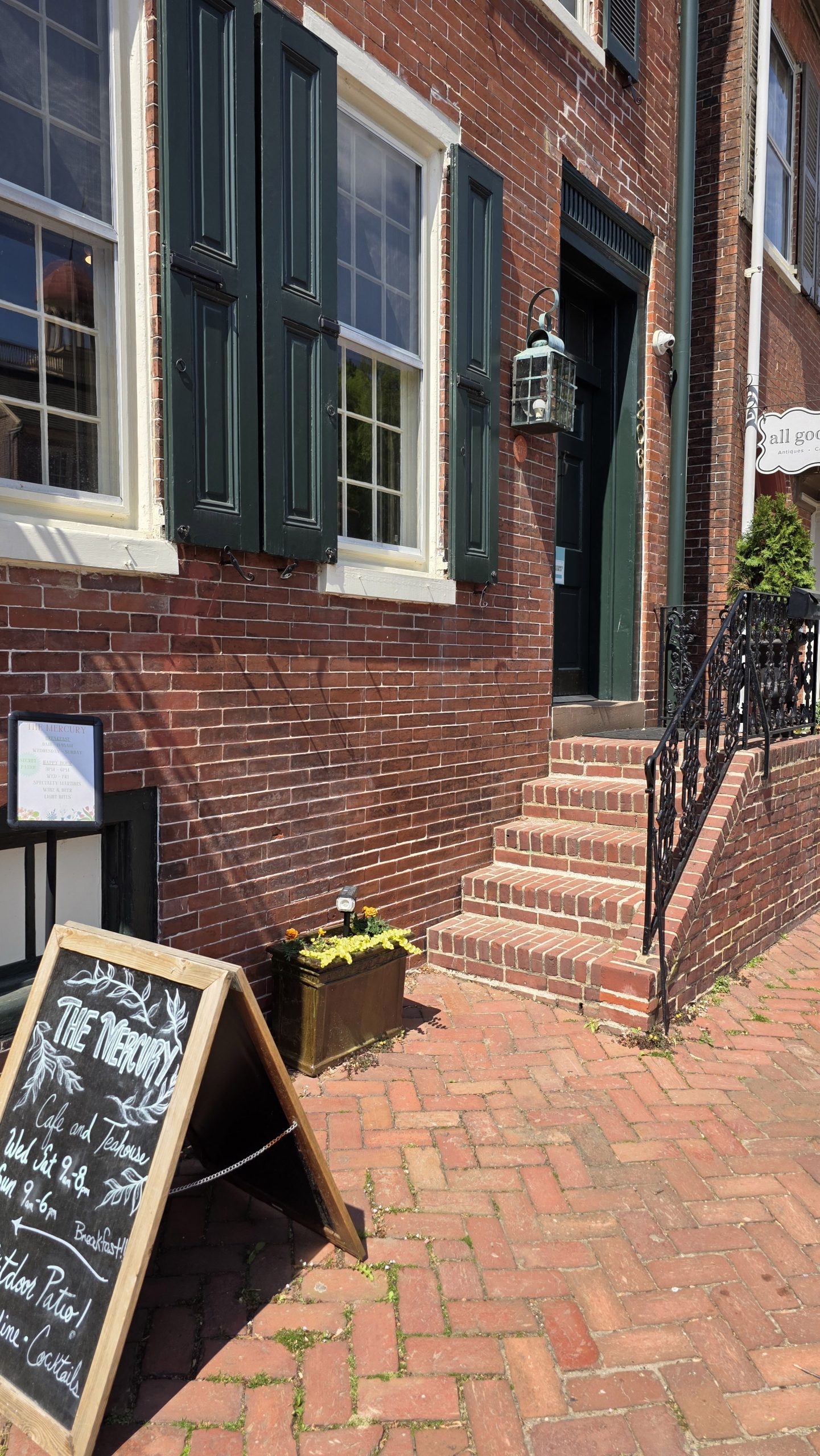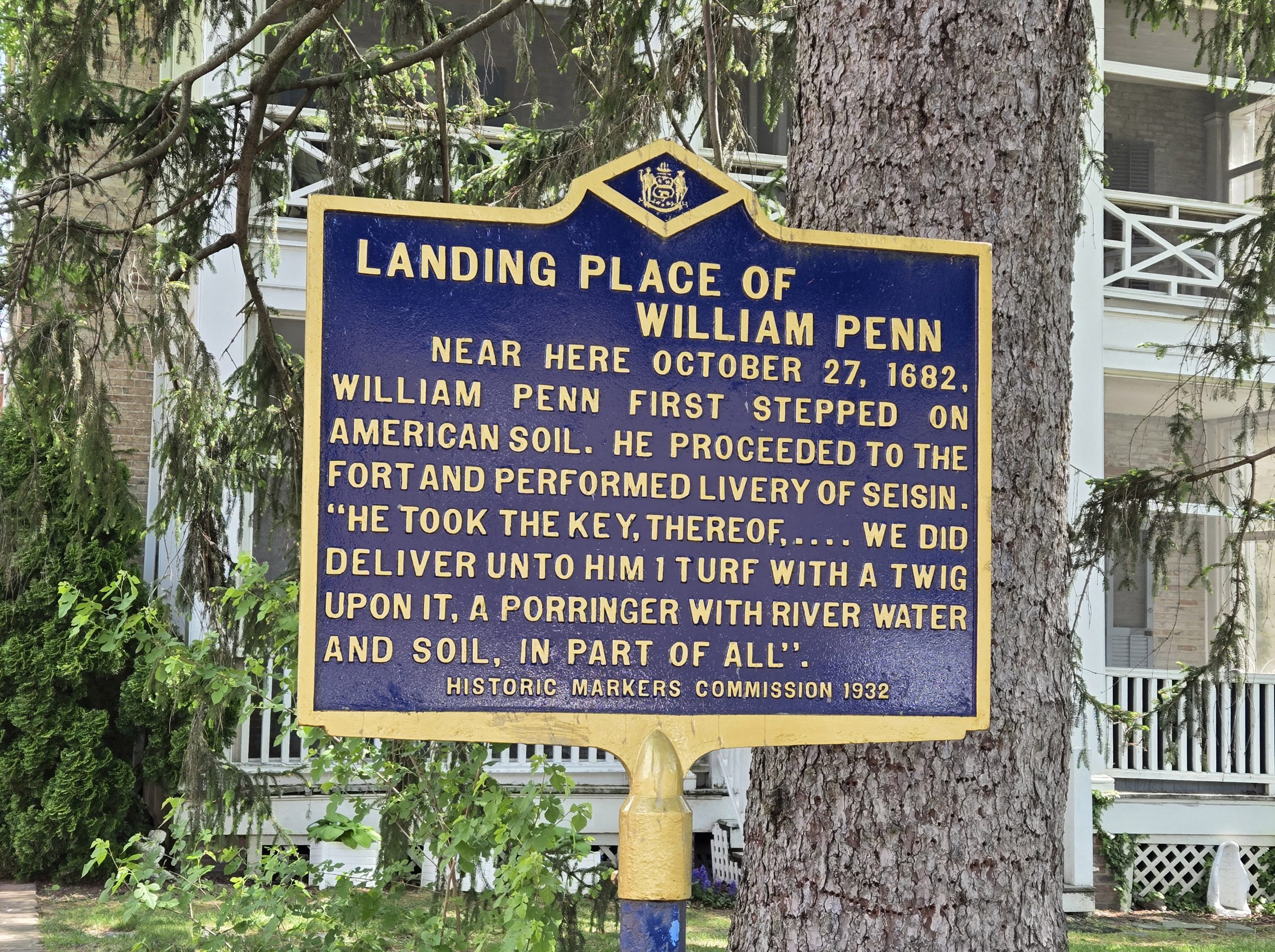 Friday, May 2, we drove from Asbury Park, NJ to New Castle, Delaware. Our visit to Delaware marks the 48th state we have driven in, mostly in the past three years. The drive from Asbury Park, NJ to New Castle, DE took us through Philadelphia. We were delayed by road construction, but we got to New Castle in time for lunch. We had lunch at the Mercury Café and Tearoom which is in a 300-year-old house associated with William Penn.