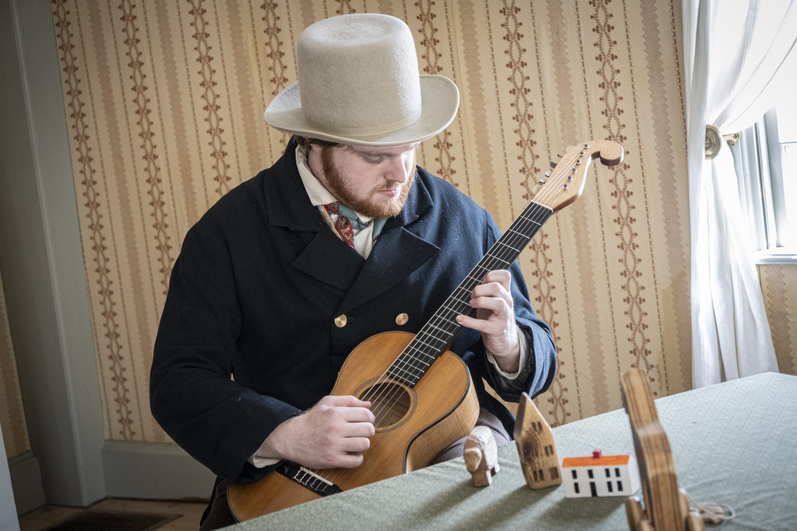 There is a large exhibit of vintage Gibson guitars and mandolins as well as several Martins and other well-known or not well known makers. A highlight was the bench and shop owned by famed guitar builders John D’Angelico and his protégé, James D’Aquisto from New York City. Both men are famous for their exquisite archtop guitars.